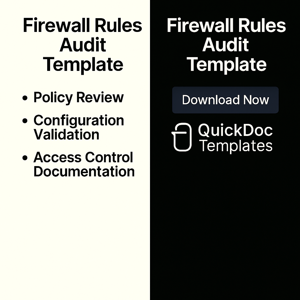 The Firewall Rules Audit Template is a professional document designed to help IT and security teams perform systematic reviews of firewall configurations and network access controls.