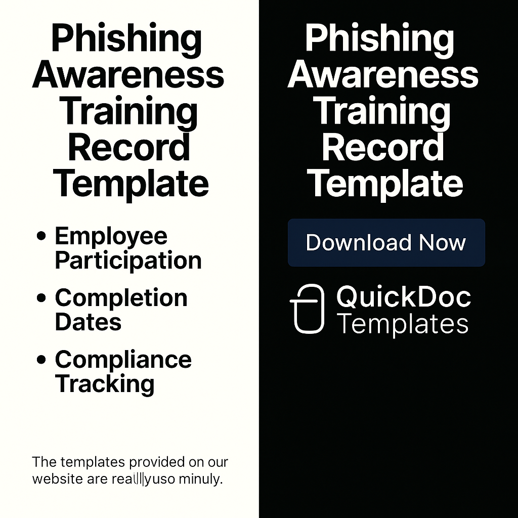 The Phishing Awareness Training Record Template provides organizations with a structured form to track employee participation in phishing and cybersecurity awareness programs.